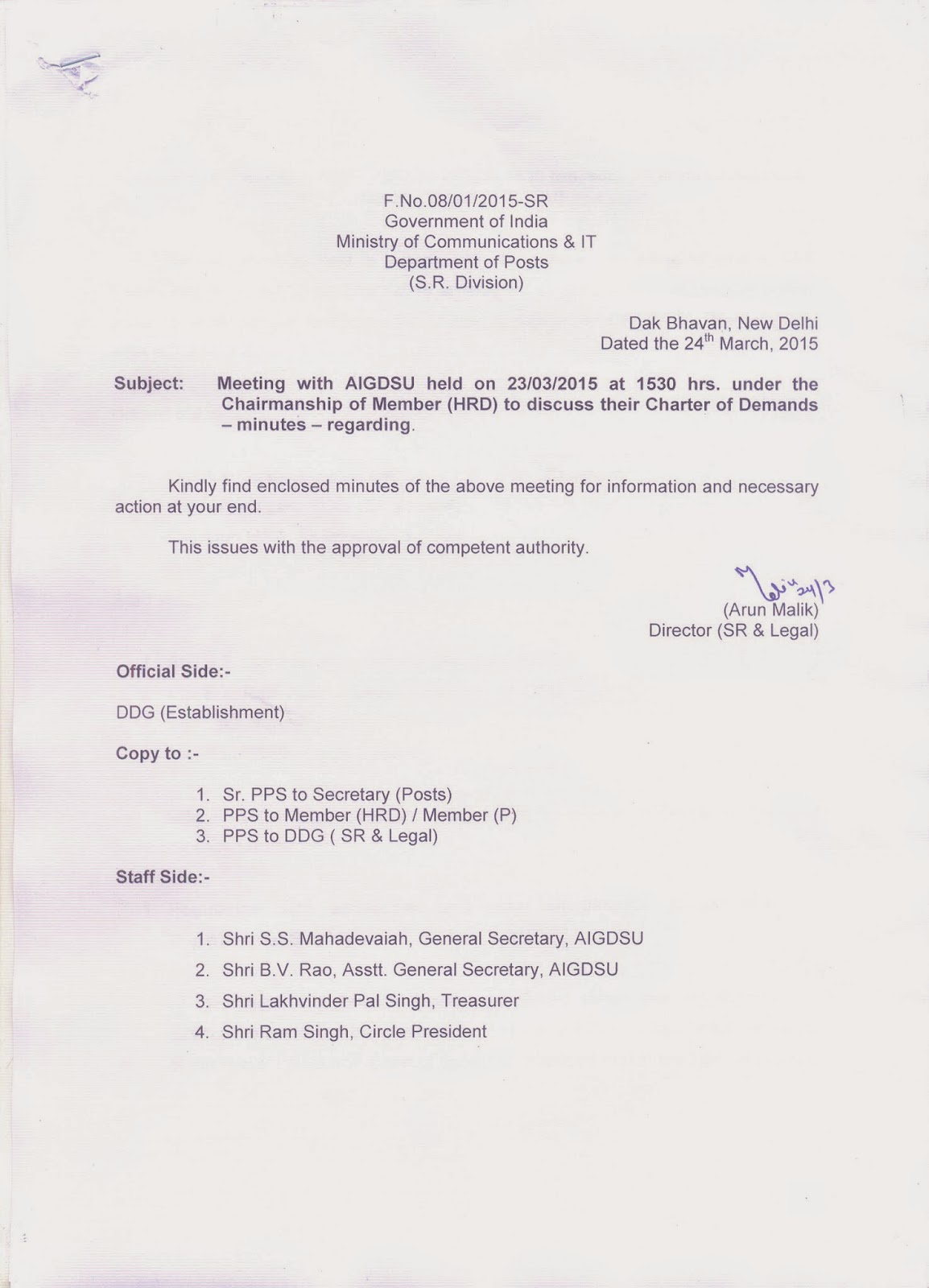 Letter No. GDS/73 /01/2015 Dated: 23/03/2015